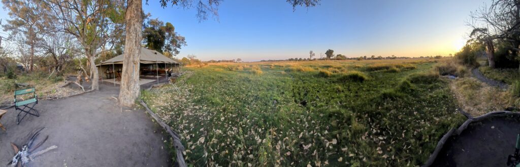 The day before, after we dropped off my companion guest, my sister of the soul for this week at Okavango Origins camp, Christy, at the airstrip, and after a wonderful safari drive, I had asked Dix if, for my birthday, the camp could sleep in. A large party was set to arrive later that afternoon of my birthday. But in that soft pause between visitors, I was the only guest in the camp. Could we all rest a little longer, and let the morning rise without hurry? He said yes, with one condition: I must not leave my tent until the sun had risen.